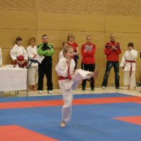 Leider hat es keiner von den vier Kids geschafft auf die ersten drei Plätze zu kommen, aber für ihr erstes Turnier in diesem Jahr haben sich alle gut geschlagen. Besser lief es für Trainerin Angie Scherzberg, startete selbst und holte Gold in der Disziplin Kumite.