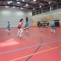 Im ersten Spiel hatten es Elena Sozonova, Marylin Seitz, Kristin Schulze, Svenja Bösch, Mandy Rettel, Jenny Scholka, Susanne Kramwinkel und Diana Kuschela mit dem Gastgeber Netzhoppers KWh II zu tun. Das Traineramt an diesem Tag übernahm Annett Briesemann, da Stammcoach Ronny Mellack selber im Pokal im Einsatz war. Trotz einiger Unkonzentriertheiten konnten unsere Frauen ihren Siegeszug fortsetzen und gewannen das Spiel klar mit 3 zu 0.