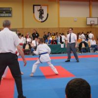 Als nächste war unsere erfahrenste Wettkämpferin, Melissa Joan Wagner, an der Reihe. Im Kumite lag sie nach der ersten Minute mit 0:2 zurück, konnte sich aber in den letzten 30 Sekunden heran kämpfen und ausgleichen. So lag es an den Kampfrichtern den Gewinner zu entscheiden. Leider unterlag Melissa mit 1:2. Auch ihr blieb ein Kampf um Platz drei verwehrt. Mit der Mannschaft lief es aber auch für Melissa besser, am Ende hieß es für die Kampfgemeinschaft Meuselwitz/Spremberg Platz 5. Von 17 Mannschaften ein tolles Ergebnis.