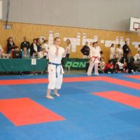 Aus Spremberg konnten aufgrund von Krankheit, nur drei Karateka nach Burkhardsdorf anreisen. Alina Neugebauer, die jüngste in unserem Team, startete als erste in der Kata Einzel Kinder unter elf Jahren. Sie gewann ihre erste Kate klar mit 3:0. Jedoch unterlag sie in der zweiten Runde der amtierenden Landesmeisterin mit 1:2. Ein weiterkommen blieb ihr versagt, da ihre Gegnerin später im Poolfinale verlor. Im Kumite kam Alina nicht recht in Fahrt und verlor die erste Runde. Diesen Fehler wollte sie in der Mannschaft wieder gut machen. Mit Erfolg! Sowohl mit der Mannschaft aus Meuselwitz als auch Chemnitz konnte sie sich Platz drei erkämpfen.