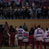 Die knappe Halbzeitführung sorgte bei unseren Trainern etwas für Kopfschmerzen. Drei Kämpfer müssen zur zweiten Runde ausgewechselt werden und dies erwies sich diesmal als besonders schwierig. „ Am liebsten hätten wir gar nicht getauscht. Wir wussten, dass die beiden Belgier auf Holler Seite stehen bleiben und wir unbedingt die beiden niedrigsten Gewichtsklassen gewinnen müssen, um unseren Heimnimbus zu wahren.“ so Trainer Andre Korb. Deshalb ließ unser Team auch die beiden erstrunden Sieger Wuttke und Schuchardt in der Aufstellung und Beide enttäuschten nicht. Wuttke und Schuchardt holten jeweils vorzeitig mit Ippon zwei wichtige Punkte. Der Belgische Meister Gielis stand nun aber etwas überraschend für die Lausitzer Judoka im Schwergewicht und siegte auch prompt gegen Marcel Schaarschmidt. „Damit hatten wir nicht gerechnet. Marcel hat den Belgier zwar zwei Mal auf der Schippe gehabt aber am Ende klar verloren. Den Punkt hatten wir eingeplant.“ so Andre Korb. Dafür holte der Spremberger Johannes Karsch gegen Maxime Lambert einen unerwarteten Punkt. Der Holler wurde wegen unerlaubten Fassens zum Bein, sehr zum Unmut der Holler Mannschaft, disqualifiziert. Diesmal mit dem besseren und vielleicht auch etwas glücklicheren Ende für die Spremberger.