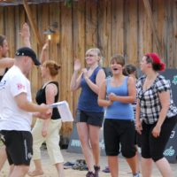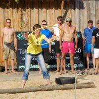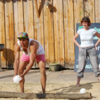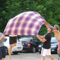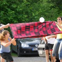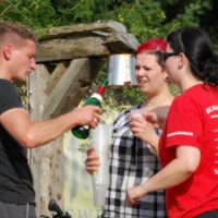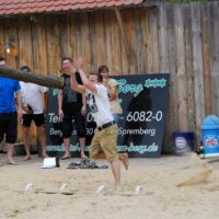 Die Mannschaftskapitäne M. Diedrich für Team „Oma`s Bande und F. Kadach für Team „Buttermilch“ hatten ihre Mannschaften gut im Griff und sorgten bei der Aufstellung für so manche Überraschung. Ob beim Baumstammweitwurf, Autoreifenzielwurf oder beim Wasserbombenfangen. Alle hatten ihren Spaß und lieferten sich bis zum letzten Spiel ein Kopf an Kopf Rennen.