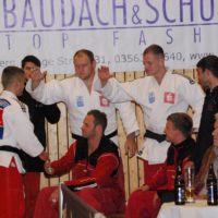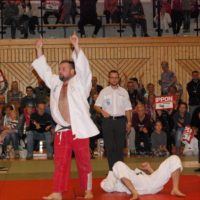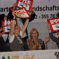 Gefeiert wurde also trotzdem. Zuerst sogar die Silbermedaille. Der Judoclub Eberswalde vertippte sich in den offiziellen Formularen und die noch wartenden Fans in der Sporthalle Haidemühl sahen einen 6:5 Sieg für Eberswalde auf dem Tablot. Freibier und Riesenjubel über die erneute Vizemeisterschaft waren die Folge. Erst gegen Mittenacht bemerkte man den Fehler, was der Party keinen Abbruch tat. „Wir haben heute eine Medaille gewonnen und das freut uns. Silber haben wir schon in Leverkusen verspielt. Hätten wir dort drei oder vier Begegnungen gewonnen, wäre Alles gut.“ erzählte ein lächelnder Kevin Schuchardt, der übrigens beide Kämpfe gegen Köln vorzeitig mit Ippon gewann.