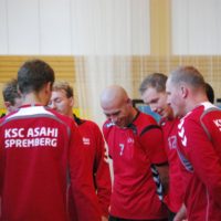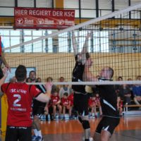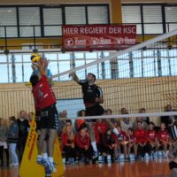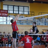 Zum dritten Satz wurde unser Team nochmals umgestellt, um dem Spiel vielleicht doch noch eine Wendung zu geben. Diesmal konnte sich der Gast sich nicht vorentscheidend absetzen und es entwickelte sich ein offener Schlagabtausch zum Satzende hin. Auch wenn es wieder eng war, wurde diesmal der KSC-Sechser für seinen Kampf belohnt. Mit 29:27 sicherte man sich den Satzanschluß zum 1:2. Nun sollte man denken, dass das Team den Schwung mitnehmen könne, um dem Spiel noch die entscheidende Wendung zu geben. Doch wieder viele kleine Fehler im Spielaufbau, die es dem Gegner leicht machten sich abzusetzen. Zwar kämpfte man sich nochmals bis auf 17:18 heran, doch danach drei Fehler in Folge und die Vorentscheidung im Match war gefallen. Am Ende hieß es 22:25 und 1:3 aus Spremberger Sicht.