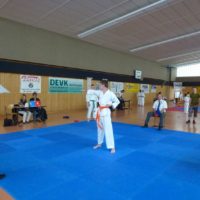 Bei den größeren konnten sich ebenfalls alle In ihren Vorrunden behaupten. Mit klaren Entscheidungen kämpften sie sich in der Disziplin Kata auf das Podest. Dabei belegten Florian Fischer und Dieter Balthuszat den dritten Platz. Bei Florian war es leider eine Fehlentscheidung die ihm die Silbermedaille kostete, aber dennoch ein klasse Leistung der beiden.