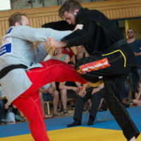 Das erste und rein holländische Schwergewichtsduell entschied Tobias Mol bereits nach 58 Sekunden für Uns und zündete damit ein Feuerwerk an hochklassigen Kämpfen. Debütant Patryk Ciechomski erhöhte danach in einem äußerst knappen und spannenden Kampf auf 2:0. Der mit einem Cut kämpfende Daniel Lenk fand auf Grund seiner Verletzung nicht in Kampf und verlor seine Begegnung. Spannend und mit einem leistungsgerechten Unentschieden endete der Kampf von Michel Daue. Erst nach dem Kampf wurde festgestellt, dass sich unser 66Kg Athlet im Kampf einen Halswirbel anbrach. Und so etwas kann es wohl nur im Judo geben, Michel brachte trotz großer Schmerzen den Kampf noch über Zeit, bevor er auf schnellstem Wege ins Krankenhaus transportiert wurde. Mittlerweile geht es Ihm besser und er wird auch wieder auf der Matte stehen können. Johannes Kruse und Maximilian Zimmermann steuerten anschließend noch 2 Punkte zur knappen 4:2 Halbzeitführung bei.