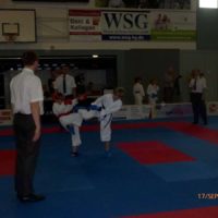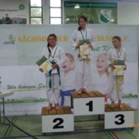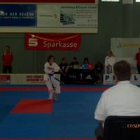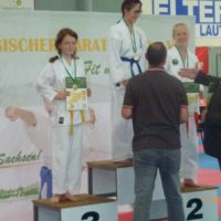 So verlor Sandy Lehnigk dann auch noch unverständlich ihre erste Runde knapp mit 2:1 in der Kata. Konnte im Anschluss aber alle Begegnungen gewinnen und sicherte sich noch Platz 3. Einer der Kampfrichter kam danach auf sie zu und sagte „ Glückwunsch Sandy, von allen aus der Klasse warst du die beste.“ Wirklich sehr zu bedauern, dass diese Leistung nicht von allen Kampfrichtern gewürdigt wurde.