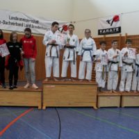 Für ein Teil unser Karateka war es die erste Landesmeisterschaft und man konnte die Anspannung förmlich spüren. So gelang es uns leider nicht eine Medaille im Kata Einzel zu ergattern, aber im Teamwettbewerb setzten unsere Schützlinge das erlernte um und sicherten sich den Vize Landesmeistertitel.
