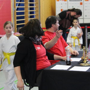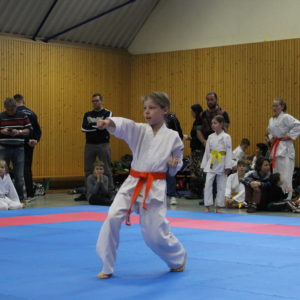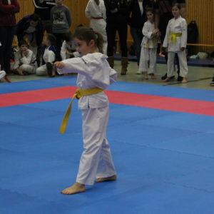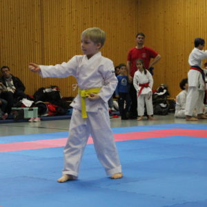 11 Karateka schickte unsere Trainerin auf die Matte. Einige von Ihnen waren zwar erst seit kurzem dabei, doch konnten sie zeigen was sie schon gelernt haben. So zum Beispiel Estefania Trinks. Sie zeigte bei ihrem ersten Turnier überhaupt gute Leistungen und fühlte sich sehr wohl auf der Matte – zum Abschluss des Tages durfte sie sich 2x mit Bronze beschmücken lassen. Auch unsere anderen Neulinge auf der Matte wie Orion und Parid Mucaj, welche erst ihr drittes Turnier bestritten durften Medaillien geschmückt nach Hause gehen. Parid startete wie Orion in seiner Lieblingsdisziplin dem Kumite, aber auch in der Kata Mannschaft probierte er sich mit Angel Lenoie Möller und Magnus Jank aus und wurden belohnt.