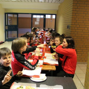 Abgerundet wurde das Wochenende mit einem Besuch in der Spremberger Schwimmhalle, einer kleinen Bustour durch Spremberg, den lustigen gemütlichen Spieleabenden und den wundervoll, leckeren Büffet´s . Dort lernten sich die Kinder nicht nur untereinander besser kennen, sondern schmiedeten schon weitere Projektideen.