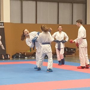 Neben dem Training gab es auch ein Randori mit Ken Corbie und den Dan Anwärterinnen/ Anwärter als Kampfrichter, sodass jeder einen Einblick über Kumite- Regeln erhalten oder vertiefen konnten.