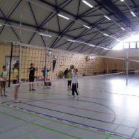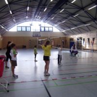 Am Montag stand allgemeine Fitness im Kinderbereich auf dem Tagesprogramm. Am Dienstag wurde mit Technik im oberen Zuspiel mit den Händen und Fingern begonnen, wobei dann am Mittwoch Aufschläge gegen die Trainer spielerisch erlernt wurden. Am Donnerstag, in der tollen Turnhalle am Puschkinplatz, welche komplett neu saniert ist, nutzten die beiden Trainer das gesamte Turnhallenmaterial an Sportgeräten aus, um Staffelspiele ala Mach mit, machs nach, machs besser, zu absolvieren. Am Freitag dann frischte man alle Einheiten noch einmal kurz auf, wo besonders auf die richtige Ausführung der erlernten Techniken geachtet wurde, bevor dann das Abschlußturnier stattfand.